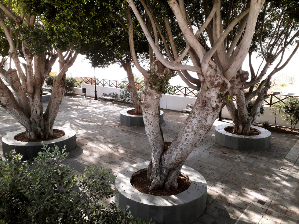 Unterhalb der Kirche biegt man nach 50m in die Calle El Cantillo ab und kommt dort 50m weiter oben zu der kleinen, dreieckigen Plaza San Pedro, wo alte indische Feigenbäume Schatten spenden und ein kleiner Brunnen plätschert. Sie heißt auch Plaza de la Cruz, in der Mitte steht ein Holzkreuz.