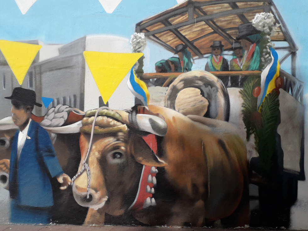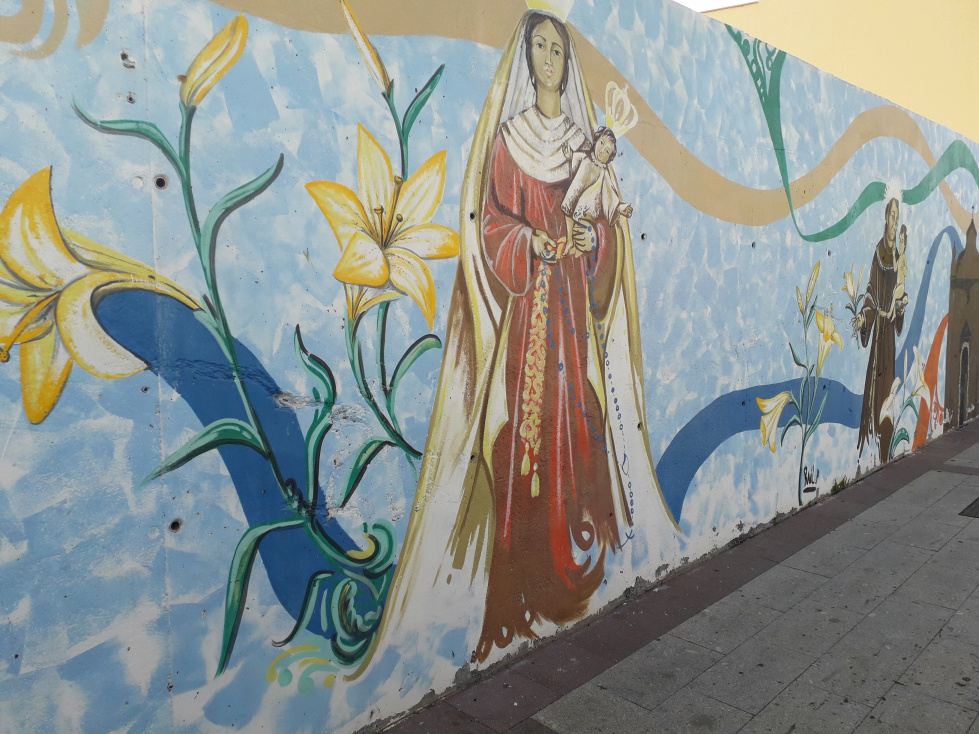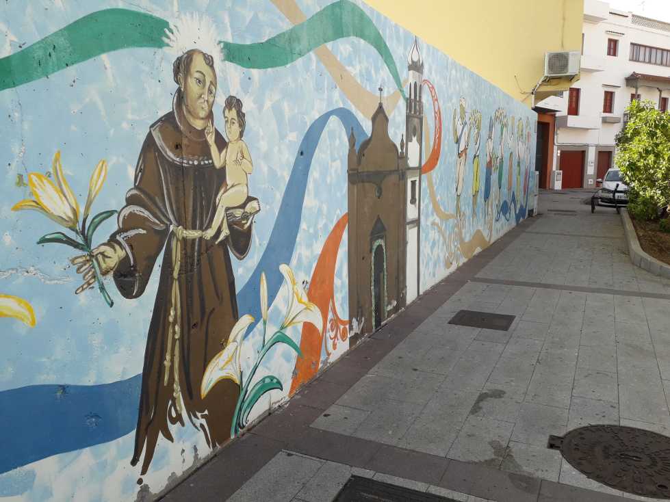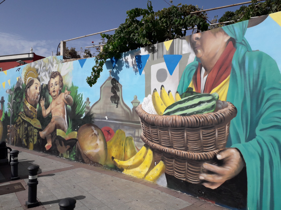 Entlang der Parkplatzes kann man noch einige Wandmalereien sehen, die die reichhaltigen Traditionen von Granadilla darstellen.