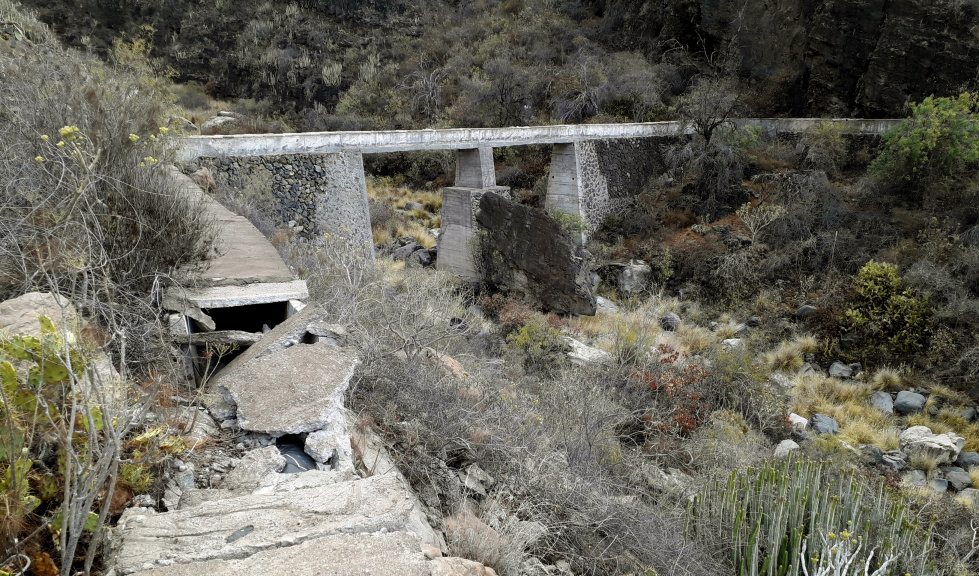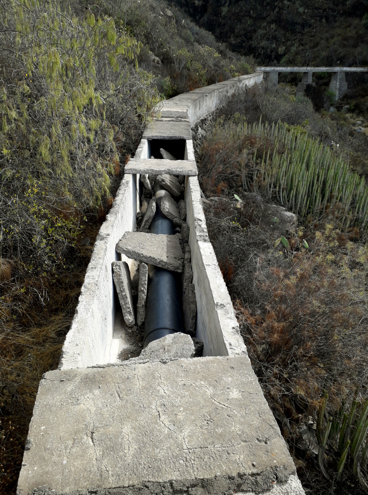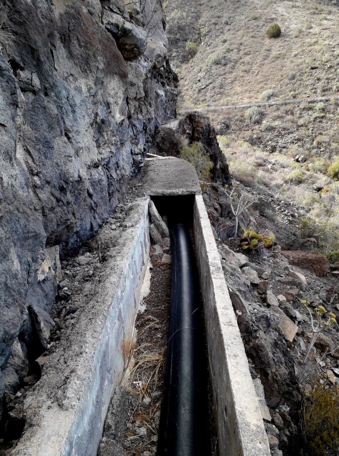 Der Canal Intermedio lieferte früher das Wasser aus den Bergen nach Adeje, wird aber schon lange nicht mehr benützt. In dem gemauerten Kanal verläuft auch ein Plastikrohr, aber auch dort fließt kein Wasser mehr.