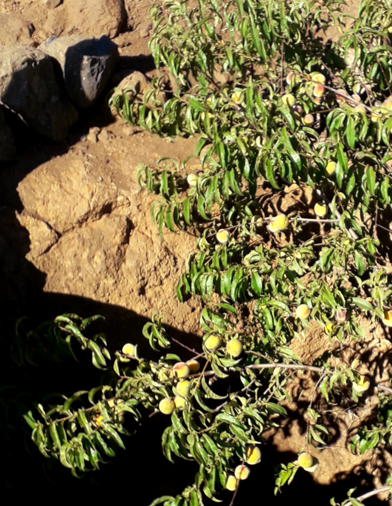 700 m oberhalb und genau auf 960 m Meereshöhe muss man nach rechts gehen. Dort kommt man gleich an einem alten Trockenofen vorbei. Hier oben gab es früher auch viele Obstbäume. Feigen, Pfirsiche oder Birnen wurden in solchen Öfen getrocknet und haltbar gemacht. Eventuell wurden hier auch Tonwaren gebrannt, direkt unter dem Ofen befindet sich eine Höhle mit Tongestein.