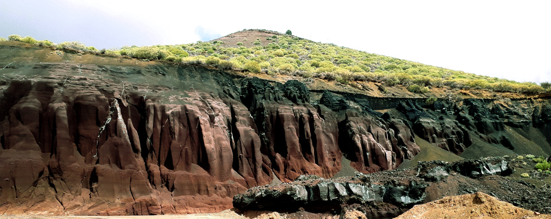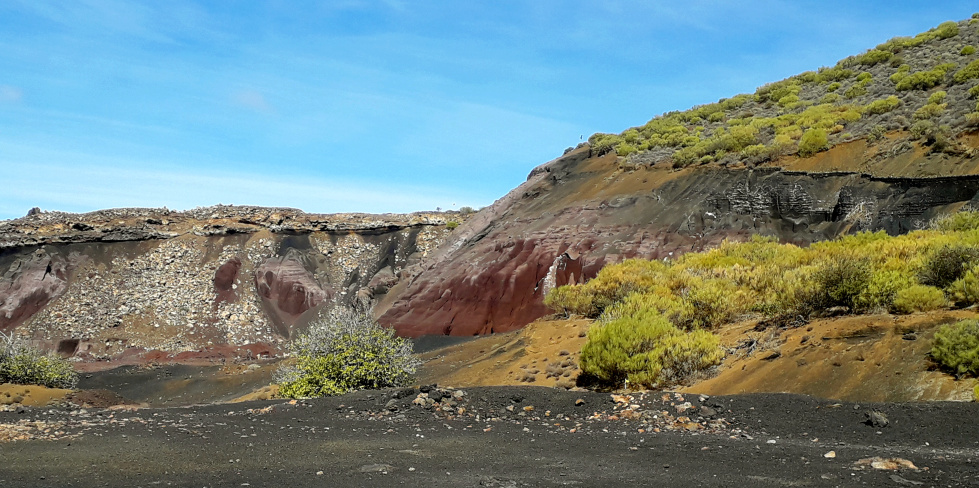 Schwarz, braun, rot ist das Gestein, grün und weiß sind die Bäume, weich die Hügel und schroff die Lavaströme. Und traurig ist die Landschaftszerstörung durch den Menschen. All diese Kontraste kann man auf einer Wanderung oberhalb von Santiago del Teide erleben. Es geht rund um einen Vulkan.