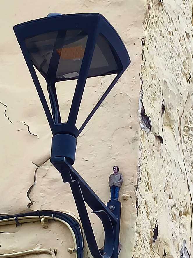 Sie sind alle Geschwister und haben denselben Vater. Der spanische Künstler Isaac Cordal hat sich spezialisiert auf kleine Figuren aus Gips oder Zement, die er in absurden Situationen aufstellt und fotografiert. Die Männchen oder Weibchen sind nur 15 cm groß, aber sie treiben sich auf der ganzen Welt herum. Vor allem in Großstädten sind sie zu sehen, von Malmö bis Zagreb, von London bis Bogotá, aber manchmal auch in kleineren Orten, so wie in Puerto de la Cruz.
