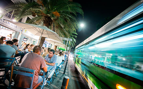 Doch erstaunlicherweise erwacht das totgesagte Nachtleben seit einigen Jahren wieder. Ein Grund dafür war sicher die Umgestaltung der Plaza de España mit der Anlage des kleinen Sees, und dass der Verkehr zumindest in diesem Bereich unter der Erde verschwand. Abends und nicht nur am Wochenende spaziert man – wie schon vor 200 Jahren – von der Plaza de España kommend durch das Tor mit den drei Bogen über die Alameda und geht an der Avenida entlang.
