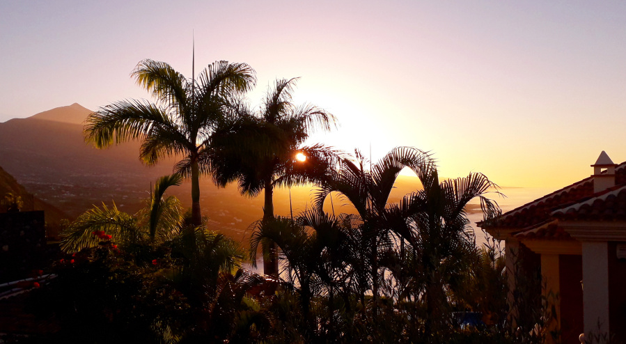 Palmen und der Teide, gesehen von Santa Ursula aus.