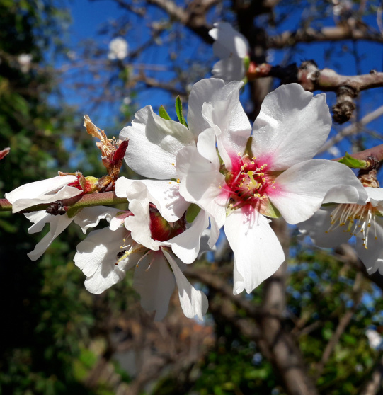 Noch einmal schöne Blüten. Im Januar beginnt wieder die Mandelblüte. Zahlreiche geführte Touren durch die weiße Pracht werden angeboten.