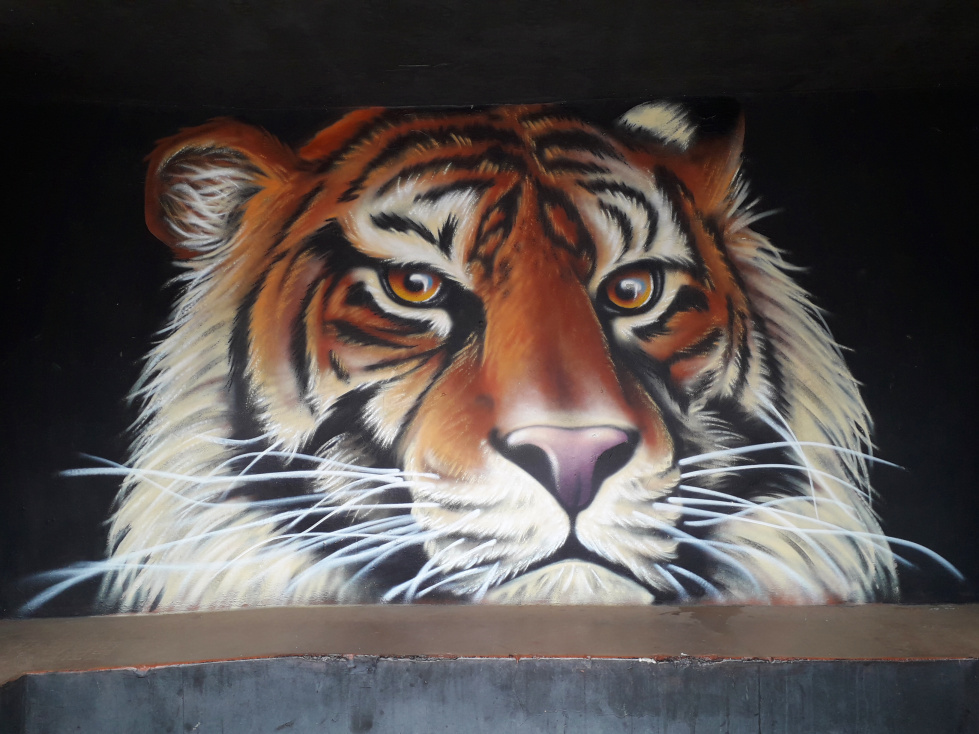 Nicht erschrecken, in dieser hübschen Bushaltestelle lauert ein Tiger. Die Linie 330 kommt dort vorbei.