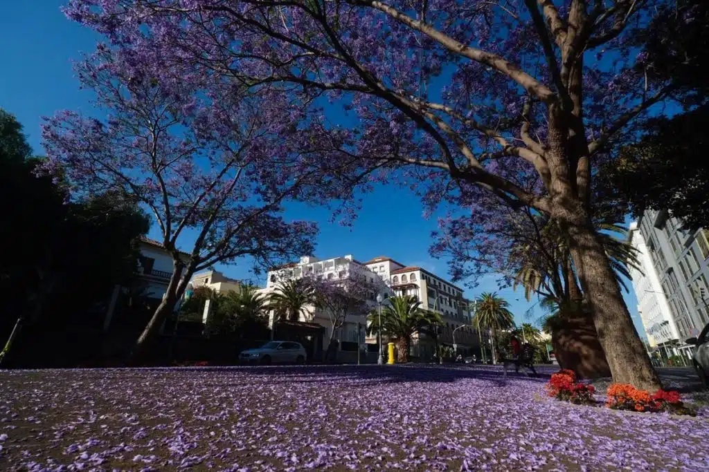 Die Blüten der Jacaranda-Bäume zaubern einen blauen Teppich auf die Straßen von Santa Cruz.