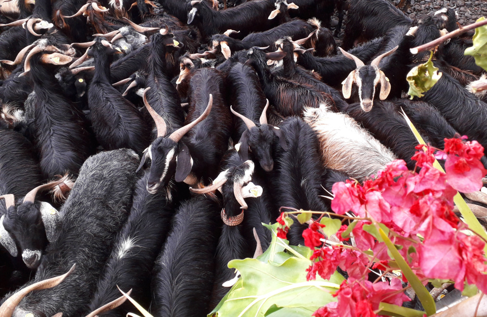 400 Ziegen wurden am 24. Juni zum Hafen von Puerto de la Cruz gebracht. Ob sie wollen oder nicht, sie müssen ins Wasser.